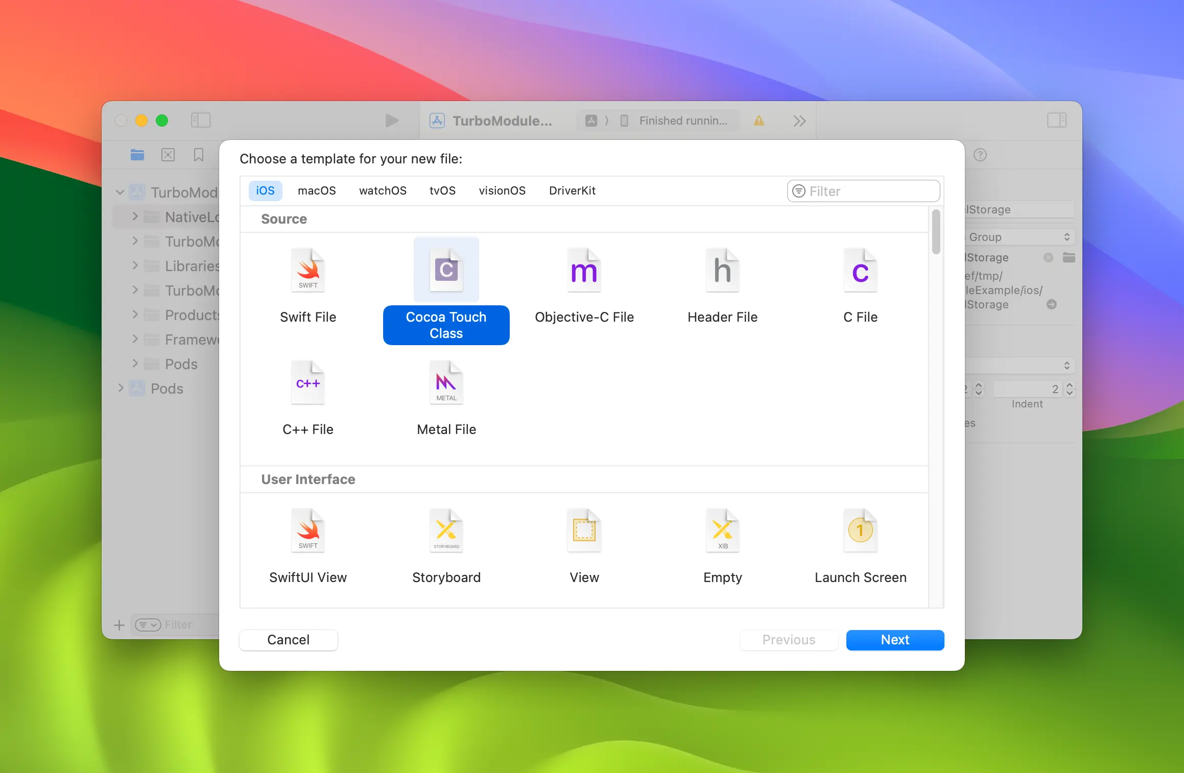 We need to prepare your iOS project using Xcode. After completing these 6 steps you'll have RCTNativeLocalStorage that implements the generated NativeLocalStorageSpec interface.